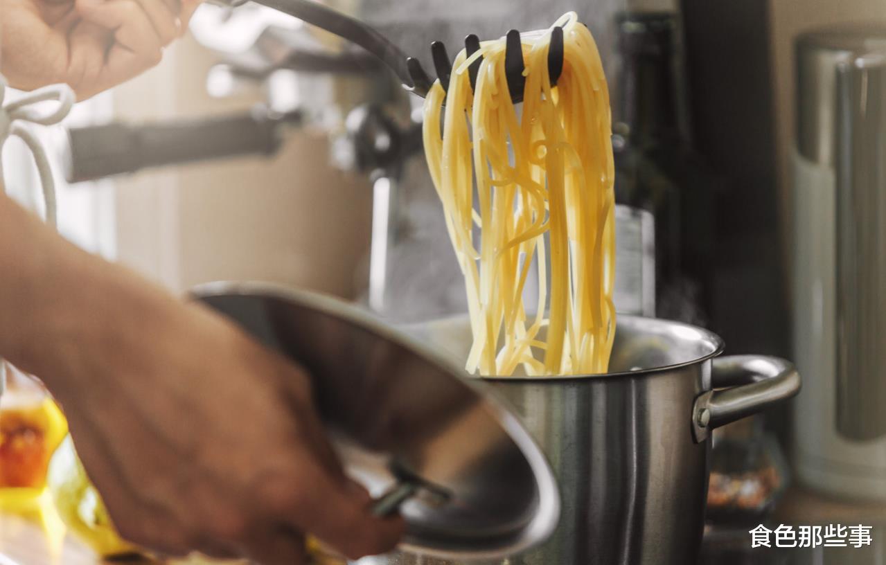 有些人煮好意面后还要过一遍水。但是这样会洗掉上面的淀粉(淀粉的作用在于吸附酱汁)。意面煮好了直接加酱汁即可。