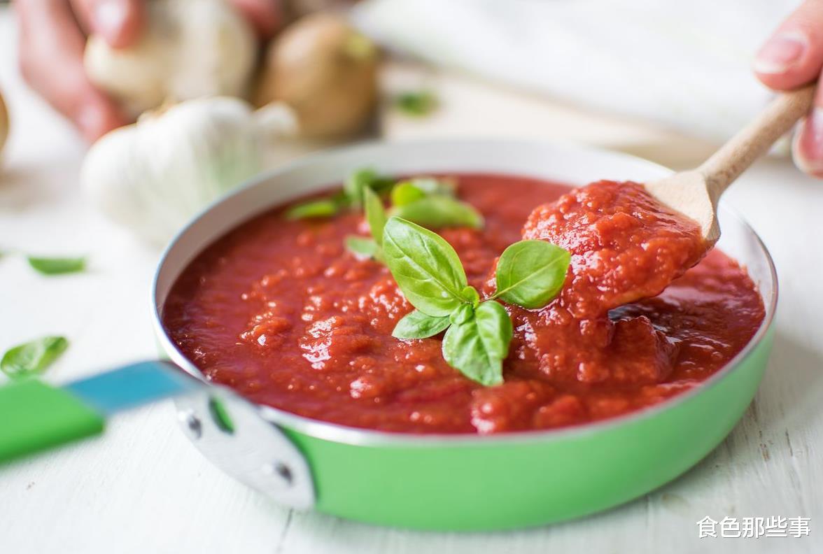 番茄酱:用圣马扎诺番茄、大蒜、橄榄油和罗勒制成。