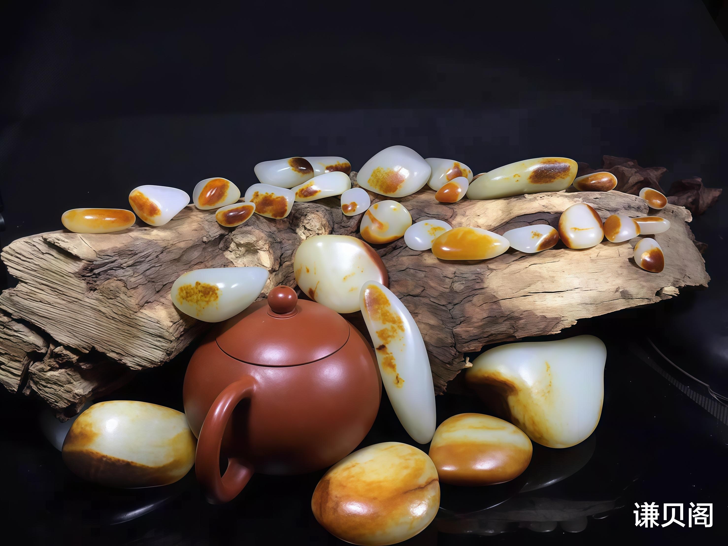 特别是那些墨玉籽料,黑色斑点或全墨色,宛如一幅神秘的水墨画。