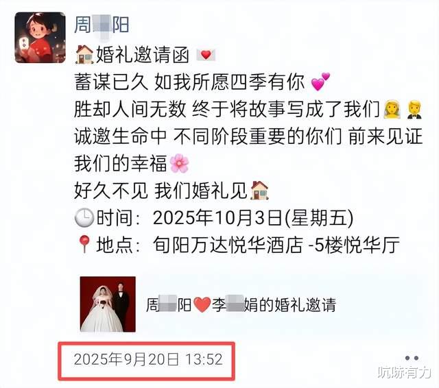 两人恋爱长跑五年,新郎的朋友圈曝光,可以看出虽然不常发动态,一年也就两三条,但发的每一条都和女友小李有关,可见爱得深沉。