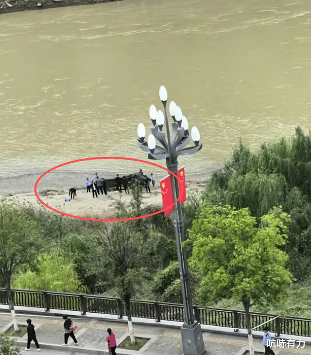 因为当时正处于涨水期,水质浑浊,新郎落水后,就冒了一下头,人就不见了。