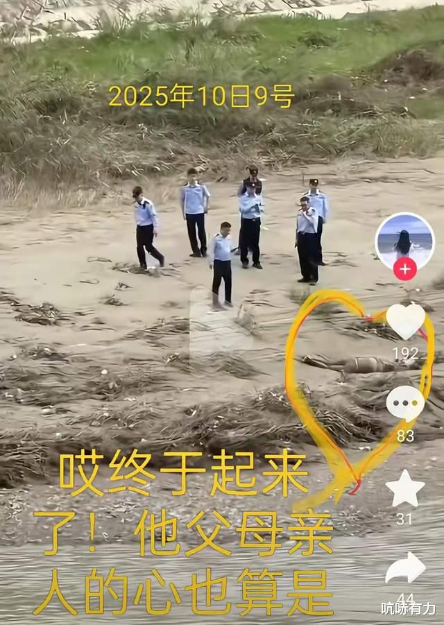 直到六天后水位退了,10月9日下午,救援人员在下游百米处的岸边找到新郎,淤泥裹身,看者落泪。