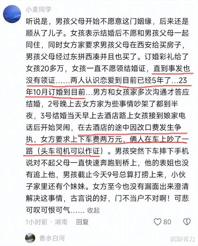 有人说新郎母亲跟着跳江了,有人传新娘家要了天价彩礼。