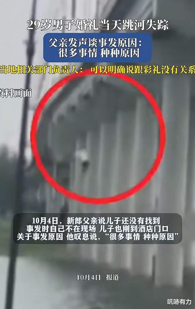 极目新闻《婚礼当天跳河男子已找到,家属:在大桥下游上百米处发现遗体,定制婚服上有新郎的名字》