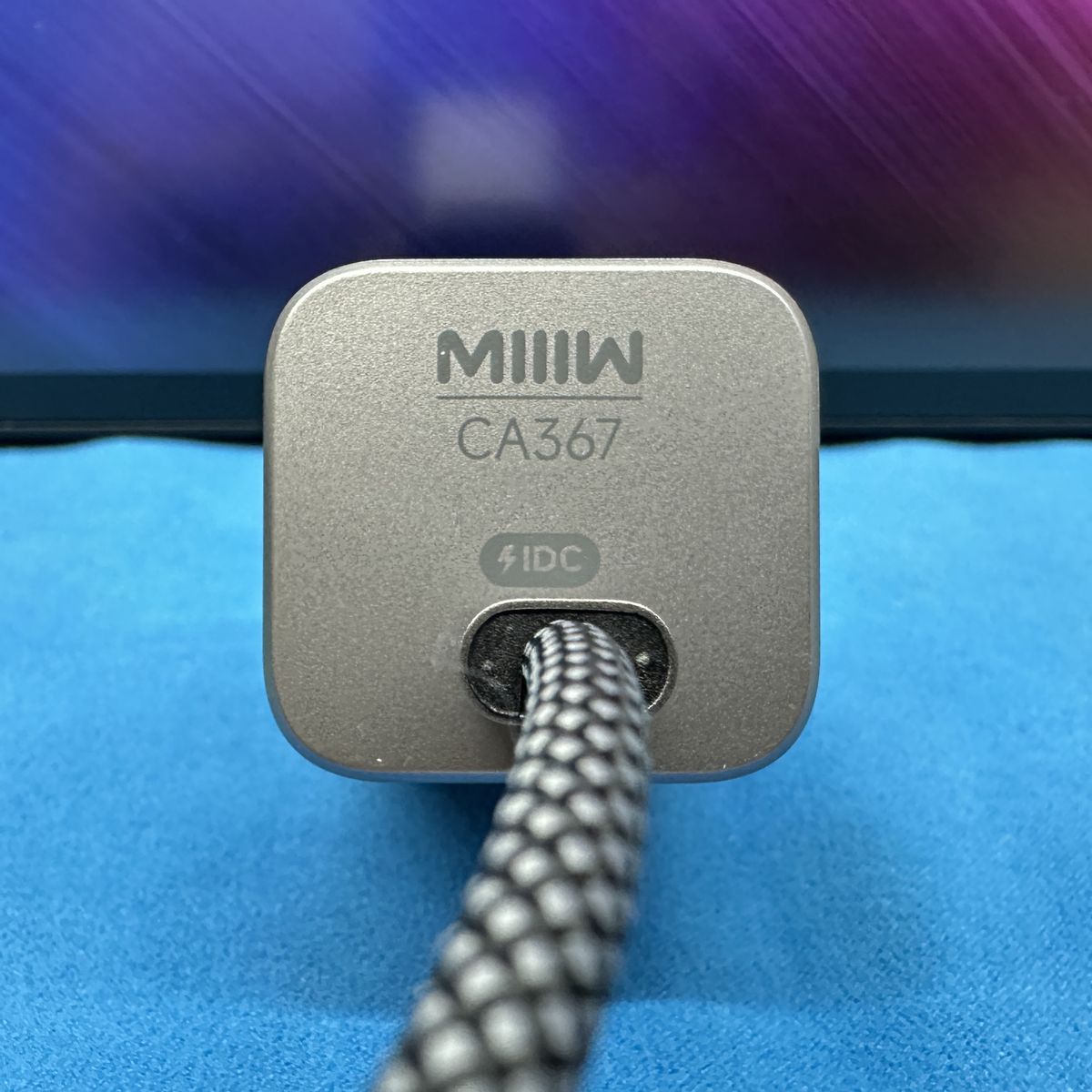 实际使用下来,这款米物67W快充头充电速度相当快。内置的NTC温度传感器+MGF超级隔热棉散热片+智能芯片三重智能温控防护,工作中发热量不大,久冲也不发烫。而且它还通过新国标3C认证,可以智能调整输出功率,使用更安心。