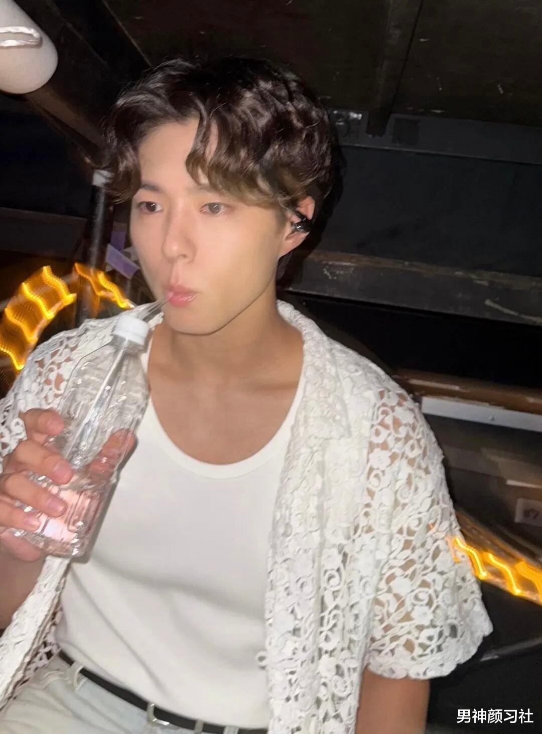 在白色背心和牛仔裤的搭配上,他也是十足的高手。很少人会想到在背心外面穿一件镂空外套,他就打造出比较清爽的感觉。整个look看着是有呼吸感的,非常加分。