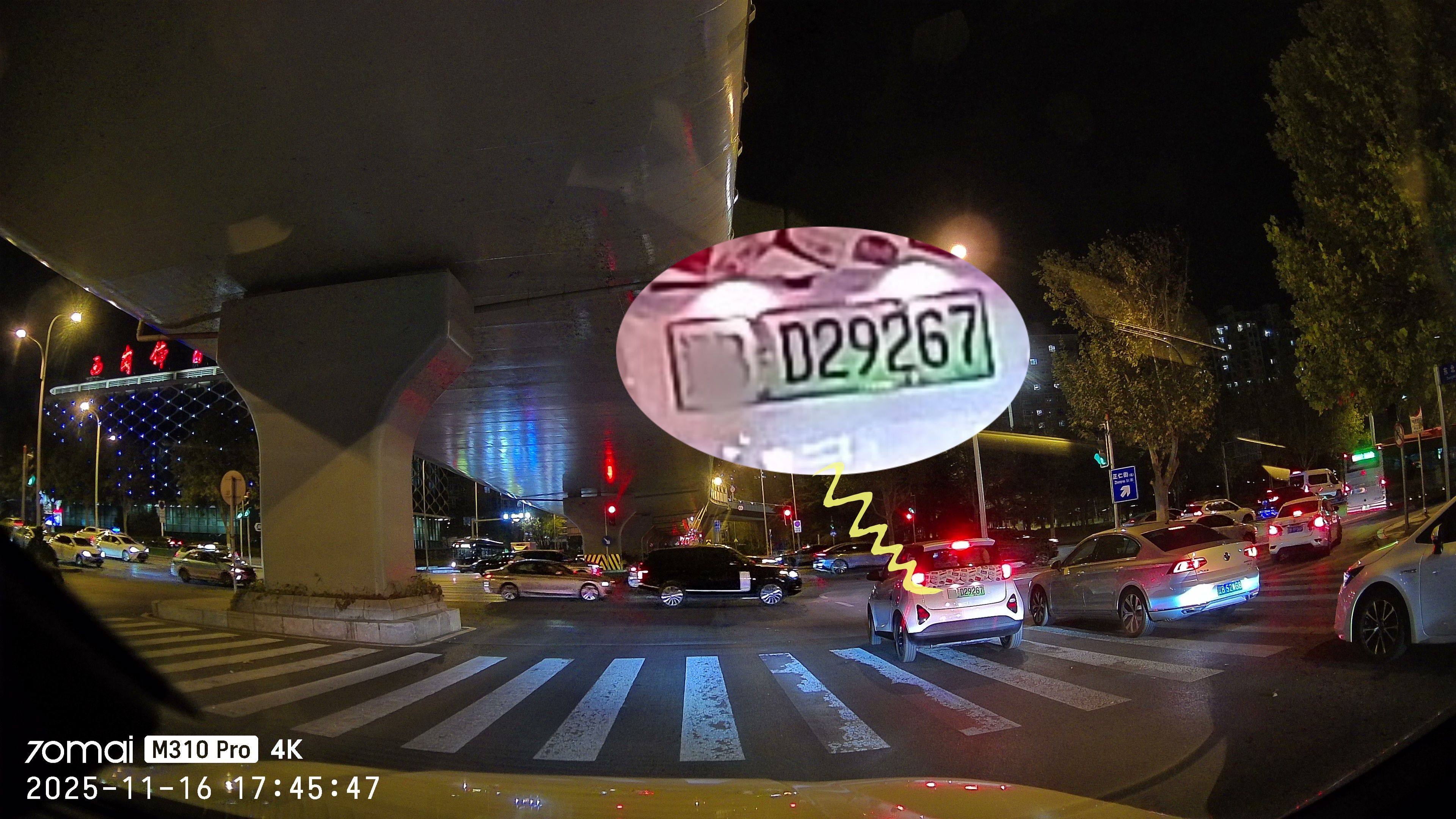 重点夸夸它的夜视能力!老司机都知道,夜间事故率比白天高几倍,之前的旧记录仪一到晚上就歇菜,路灯反光 + 对面车灯炫光,画面直接变成 “抽象画”。但这款搭载了 F1.55 大光圈 + 70 迈自研的星光夜枭影像,进光量比前代提升 78%,通过算法调优相比业内传统方案亮度提升 35%。实测小区昏暗停车场、没有路灯的乡间小路,不仅能看清前方车牌,连旁边行人的衣着颜色都能分辨,再也不怕夜间事故 “有理说不清”。