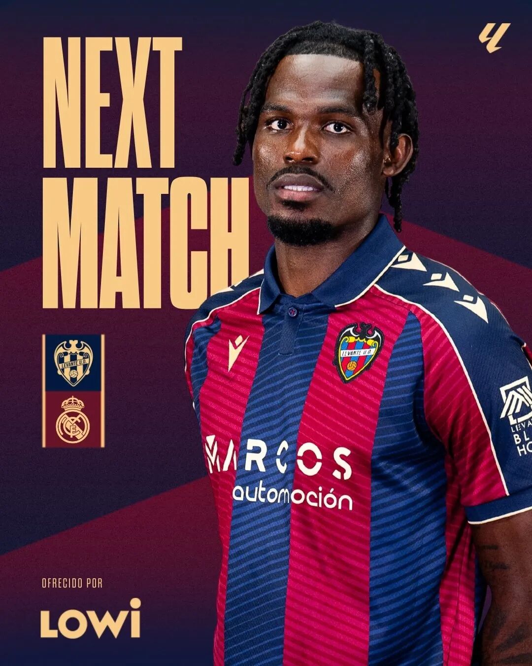 在联赛的第一天,莱万特教练胡利安·卡莱罗在与皇家马德里球迷的决斗前承认,“我们放了一段皇家马德里的短视频,因为他们很吓人。”对于这次发送,Julián Calero将保持与最后一天几乎相同的球员区,除了Olasa在首发十一场的Pablo Martínez的参赛。莱万特本场可能的阵容Toljan、Elgezabal、Matías Moreno、Manu Sánchez;Carlos Álvarez、Oriol Rey、Vencedor、Pablo Martínez;Iván Romero和Etta Eyong。