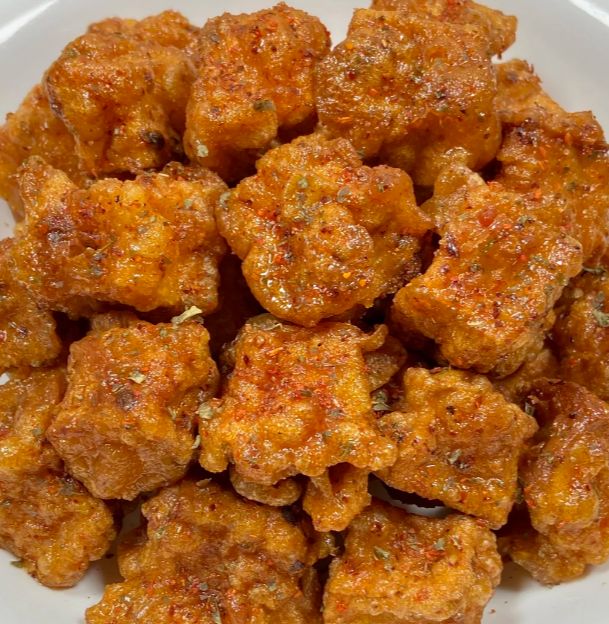 趁热将炸好的杏鲍菇倒入一个较大的容器中,均匀地撒上准备好的椒盐粉,还可以根据喜好加入少许辣椒粉和孜然粉。快速颠簸容器,让调料均匀地附着在每一块杏鲍菇上。这样,一盘色香味俱全的安徽家常椒盐杏鲍菇就做好了。刚出锅的椒盐杏鲍菇,热气腾腾,香气四溢。咬开金黄酥脆的外壳,里面是软嫩鲜滑的菇肉,咸香可口,略带椒麻,让人食欲大开。