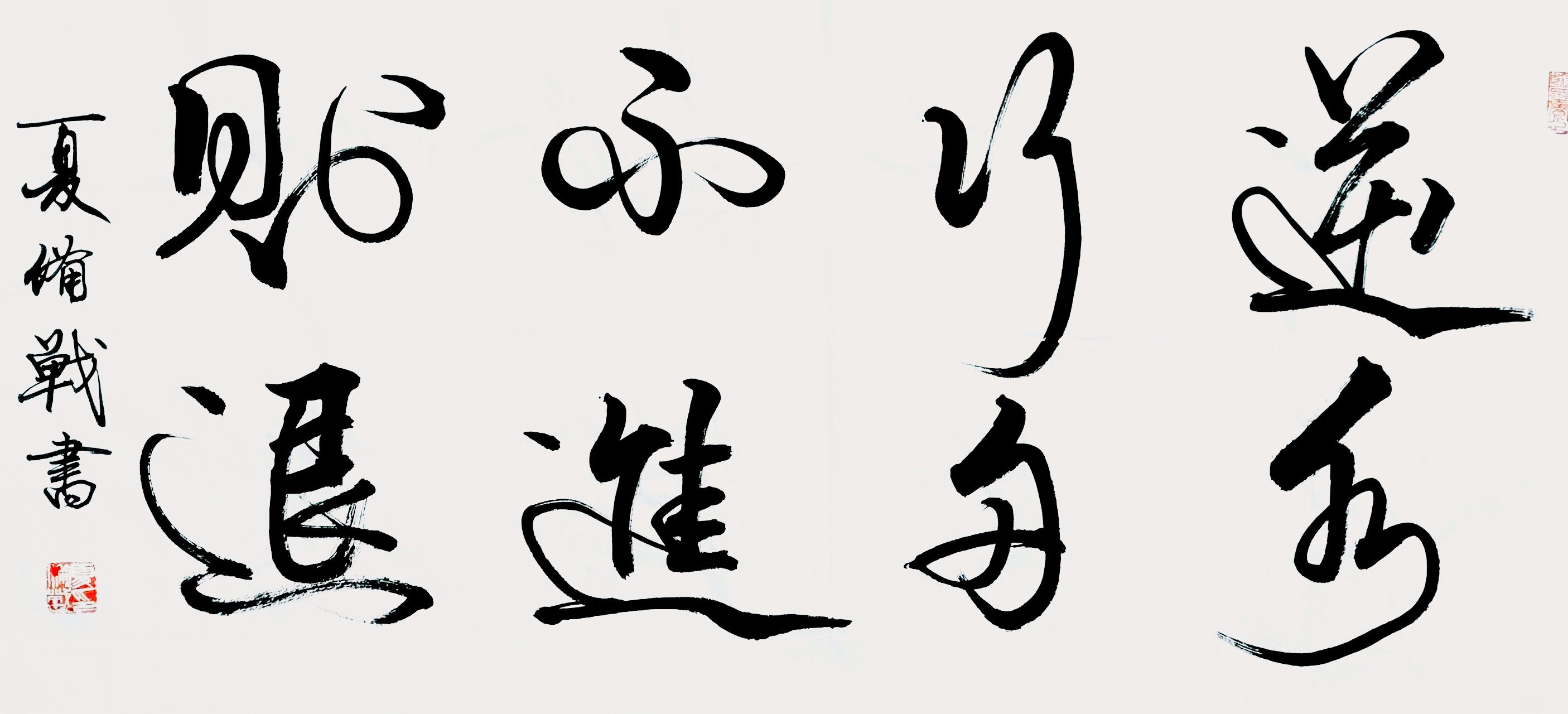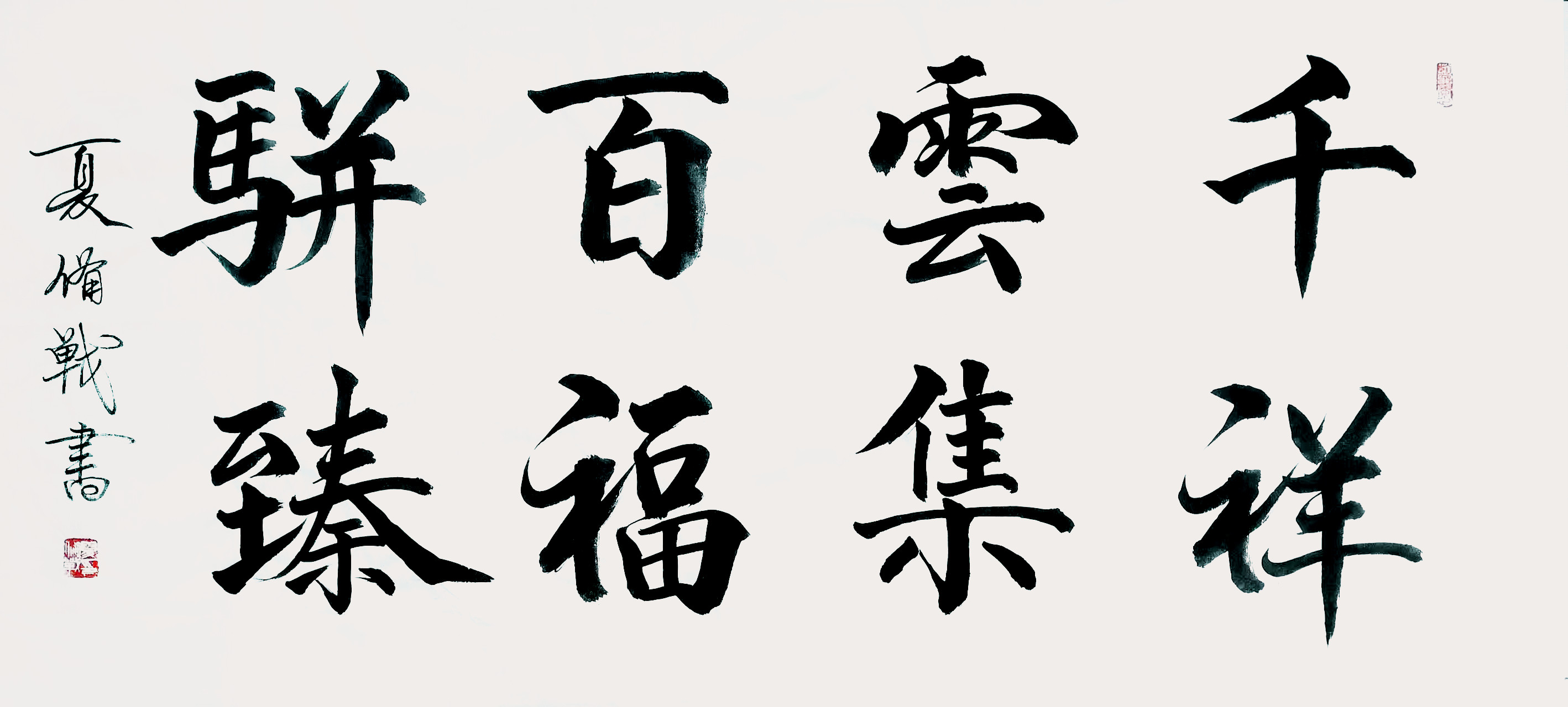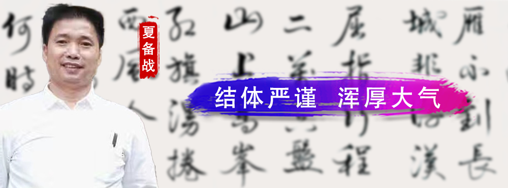 夏备战书法,笔力遒劲,线条刚柔相济,如行云流水而不失骨力;墨色层次丰富,枯润相生,韵味悠长,于笔墨流转间尽显深厚传统造诣。他深耕历代名家经典,临习不辍,兼收并蓄诸家之长;更注重书法理论研修与字外功夫积淀,融古今之韵,拓艺术新境,终成独树一帜的艺术风格。