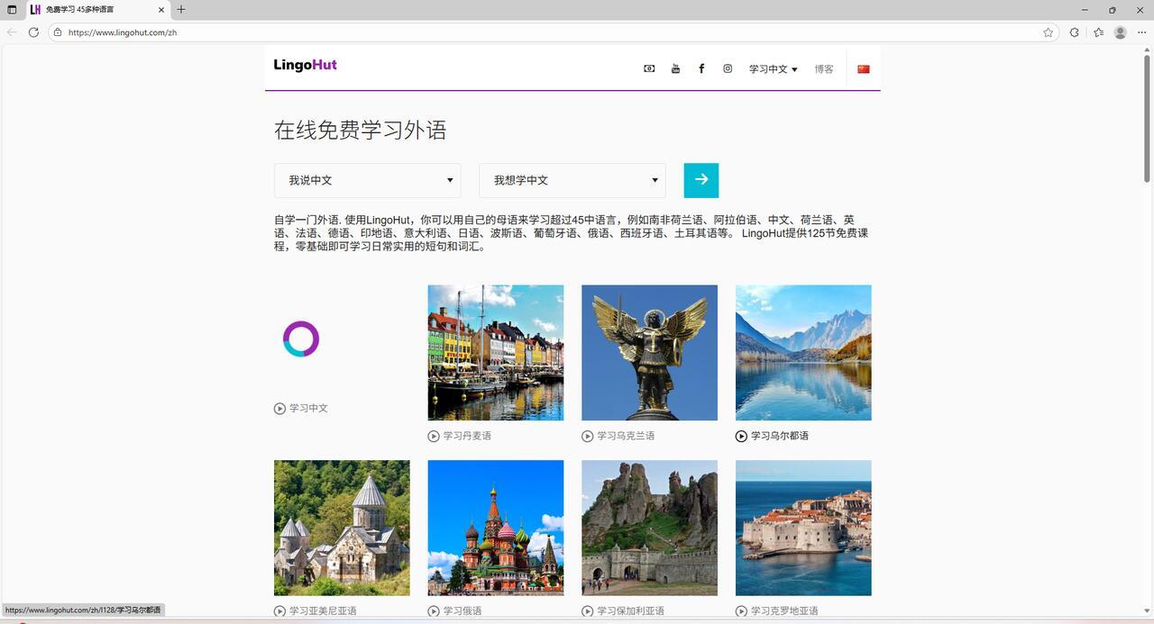 五、LingoHut这是一个国外知名的免费语言学习网站,承诺永久免费开放。网站提供 60 多种语言的学习资源,完全不用担心学不下去 —— 内置很多好玩的互动游戏,能让你始终保持学习热情。
