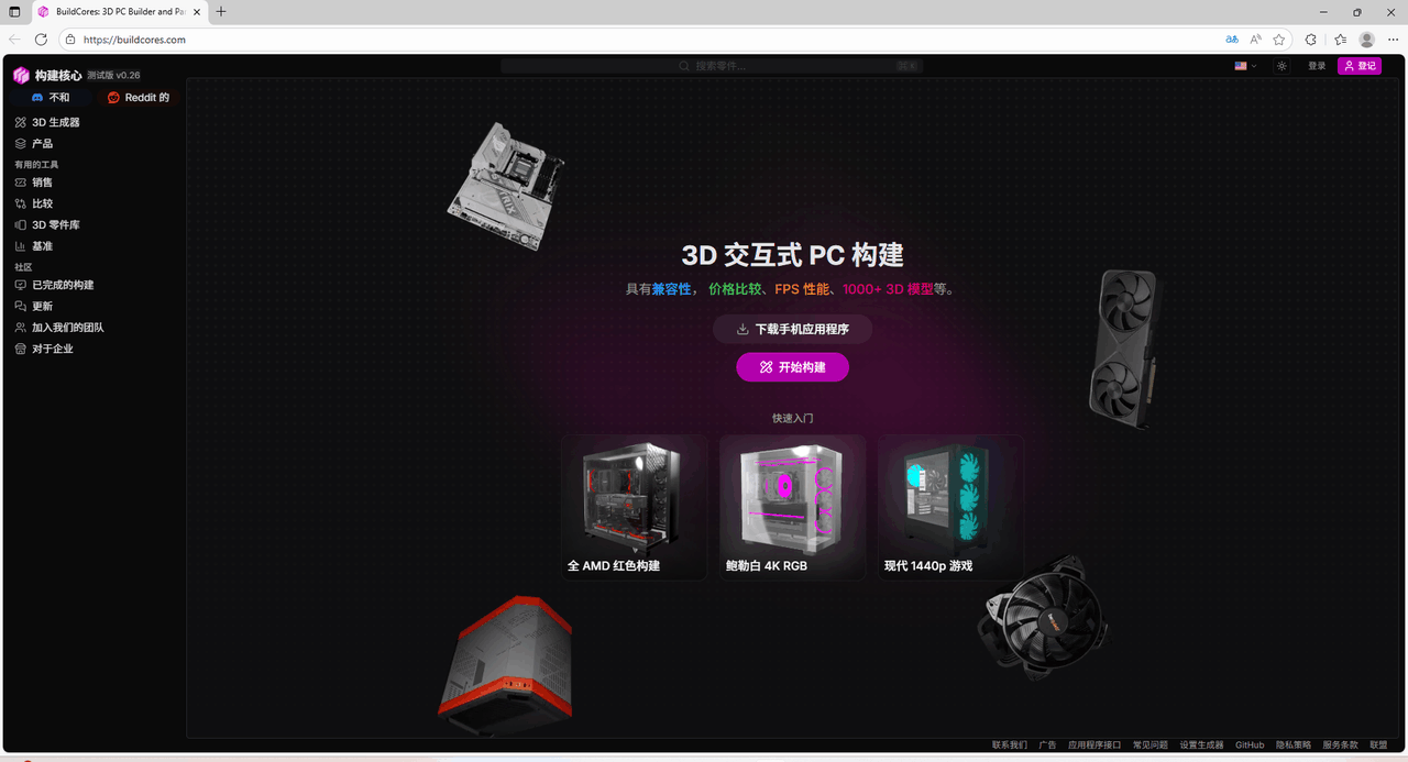这是一个能以 3D 方式模拟组装电脑的网站,可充分发挥你的脑洞搭配主机。网站涵盖电脑必备的所有配件,从机箱、CPU 到主板、GPU 等应有尽有,选择配件时,直接点击 “添加” 就能看到全部选项,左侧还有更多细分选择供筛选。
