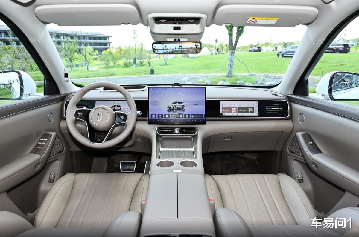 坐进驾驶舱,环抱式对称结构将座舱划分为对称的主副驾区域,台面采用了双拼色的内饰配色,并增加了烤漆饰板、镀铬饰条等装饰提升豪华感。车内配有16.1英寸3K悬浮中控屏,与10.25英寸液晶屏和10.25英寸副驾屏组成了车内的三屏交互区。车机内搭载了HarmonyOS智联系统,从实际操作体验来看,车机系统保持了流畅的运行速度,小艺智慧助手给我留下了较深的印象,在融合DeepSeek后,可实现复杂语义、连续指令和方言输入。问界M7后排还可选装17.3英寸娱乐屏,并支持触控、语音与遥控器三种控制方式,可进一步提升车内的交互体验。