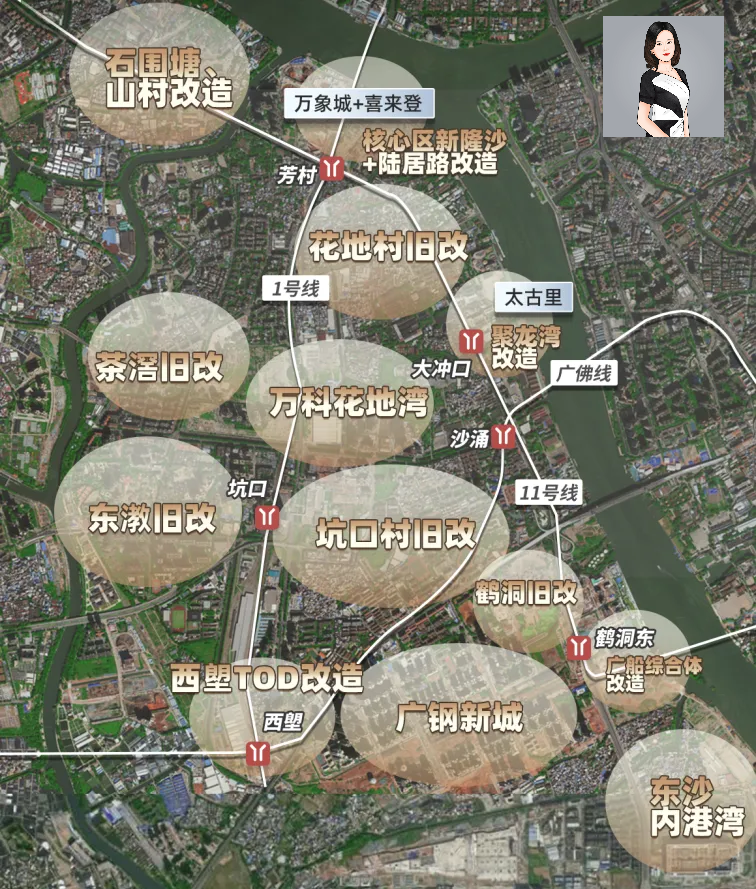 从第一步的广钢,到上一步的白鹅潭cbd,花地湾,广船内港湾,大坦沙,到下一步的聚龙湾,西朗车辆段和石围塘,荔湾或快或慢的,都走出了前进的步伐。