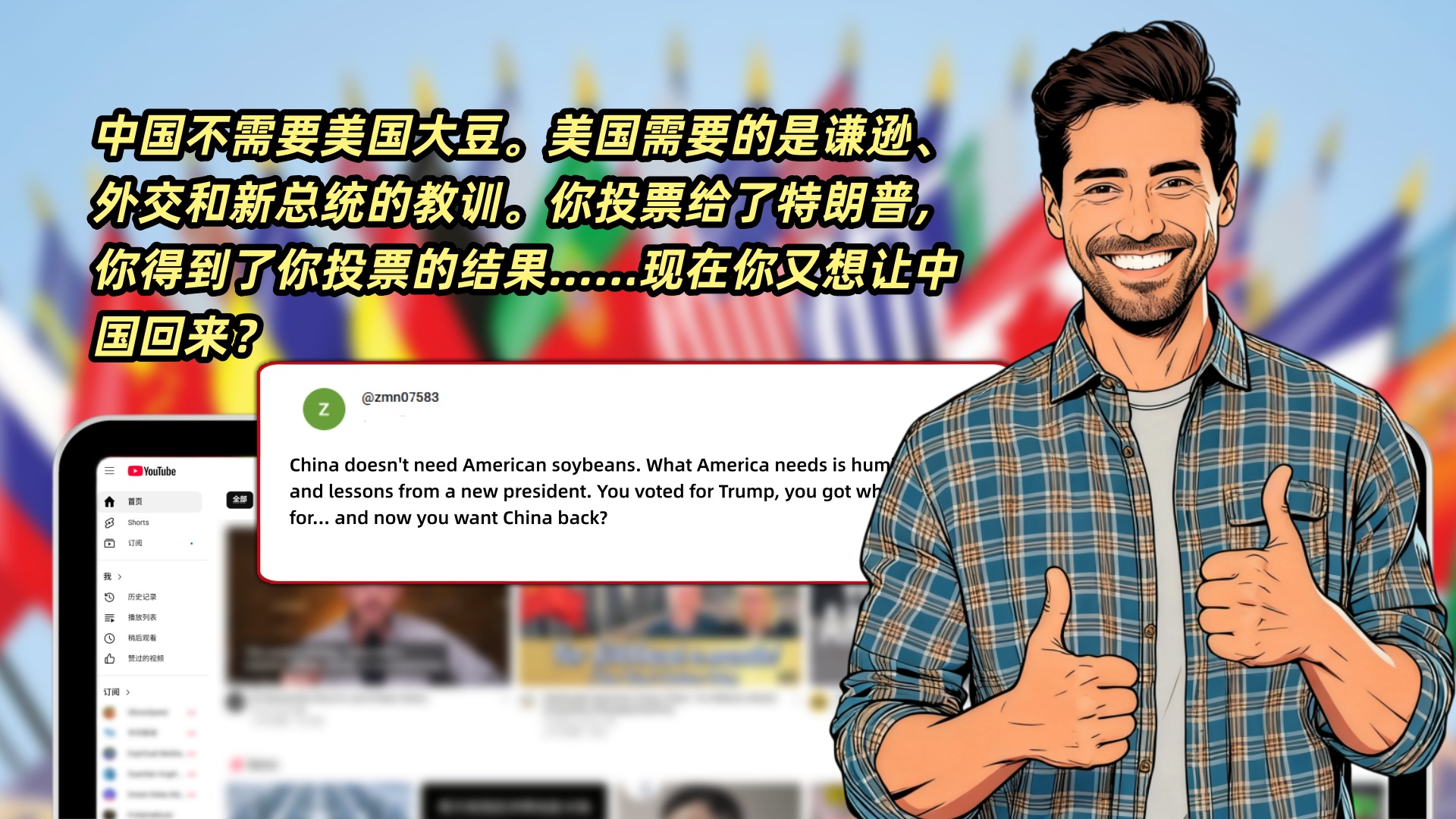 网友zmn07583有些无语地说道:“中国不需要美国大豆。美国需要的是谦逊、外交和新总统的教训。你投票给了特朗普,你得到了你投票的结果……现在你又想让中国回来?”