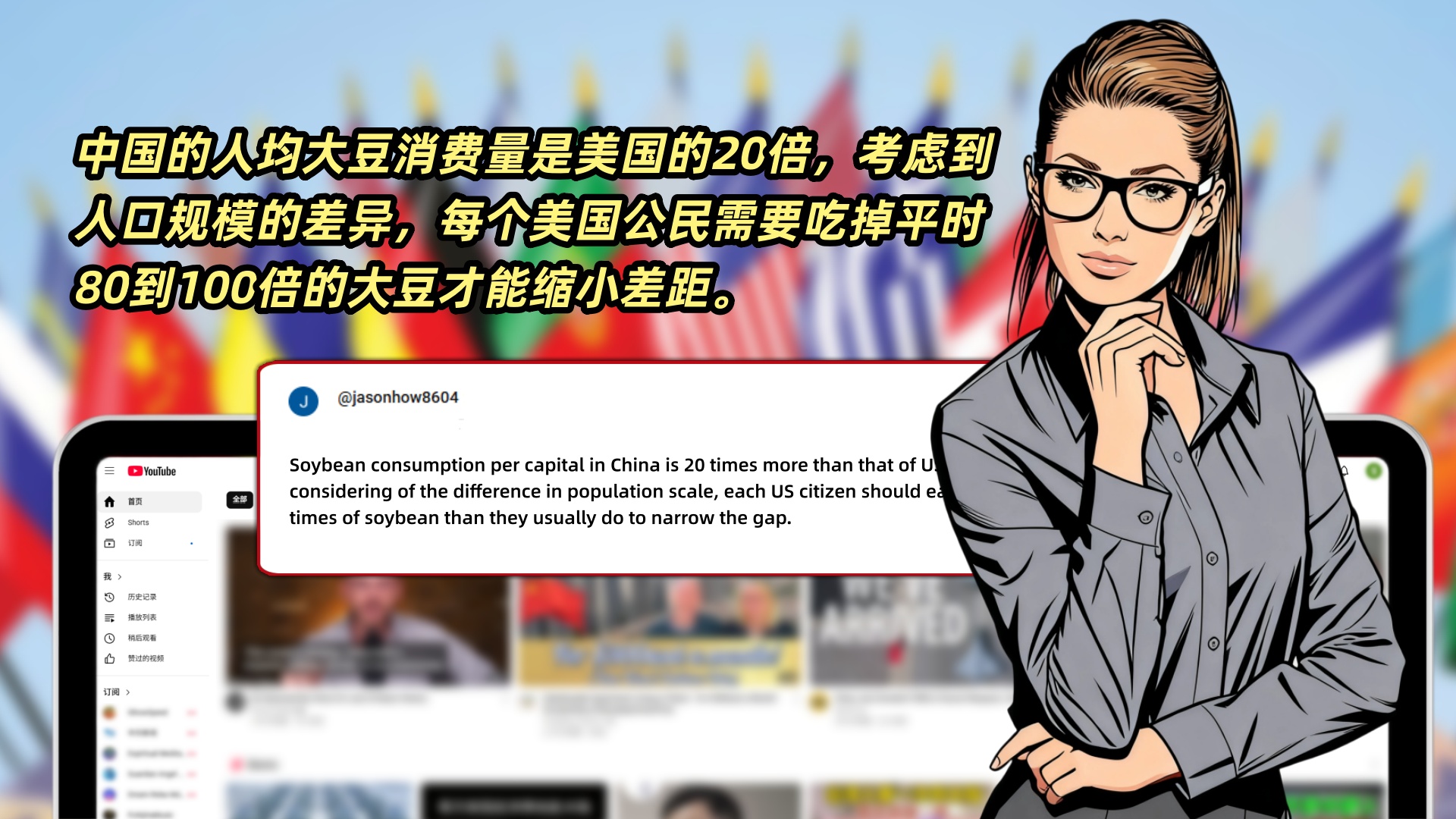 网友jasonhow8604调侃道:“中国的人均大豆消费量是美国的20倍,考虑到人口规模的差异,每个美国公民需要吃掉平时80到100倍的大豆才能缩小差距。”