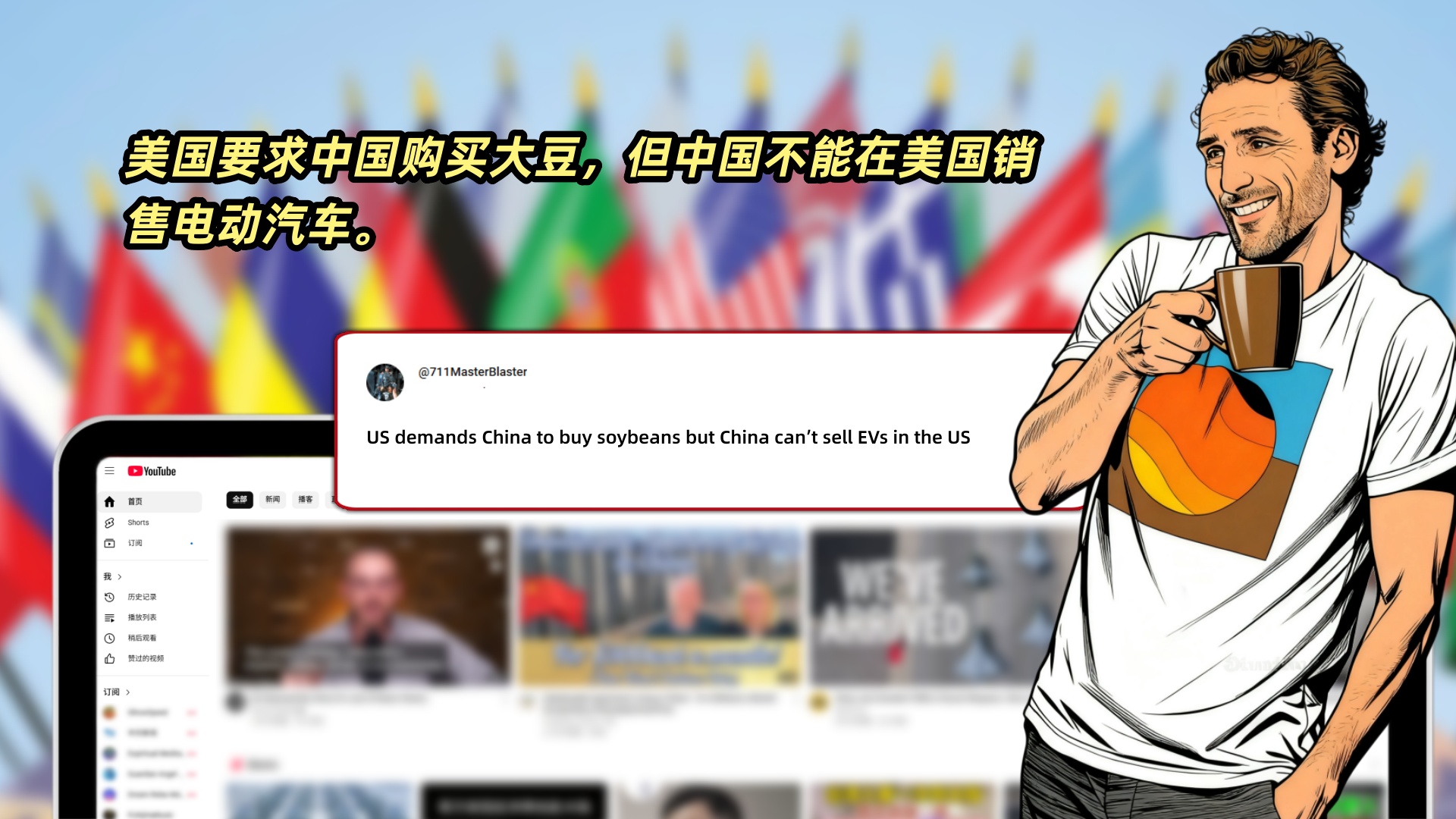 网友711MasterBlaster讽刺道:“美国要求中国购买大豆,但中国不能在美国销售电动汽车。”