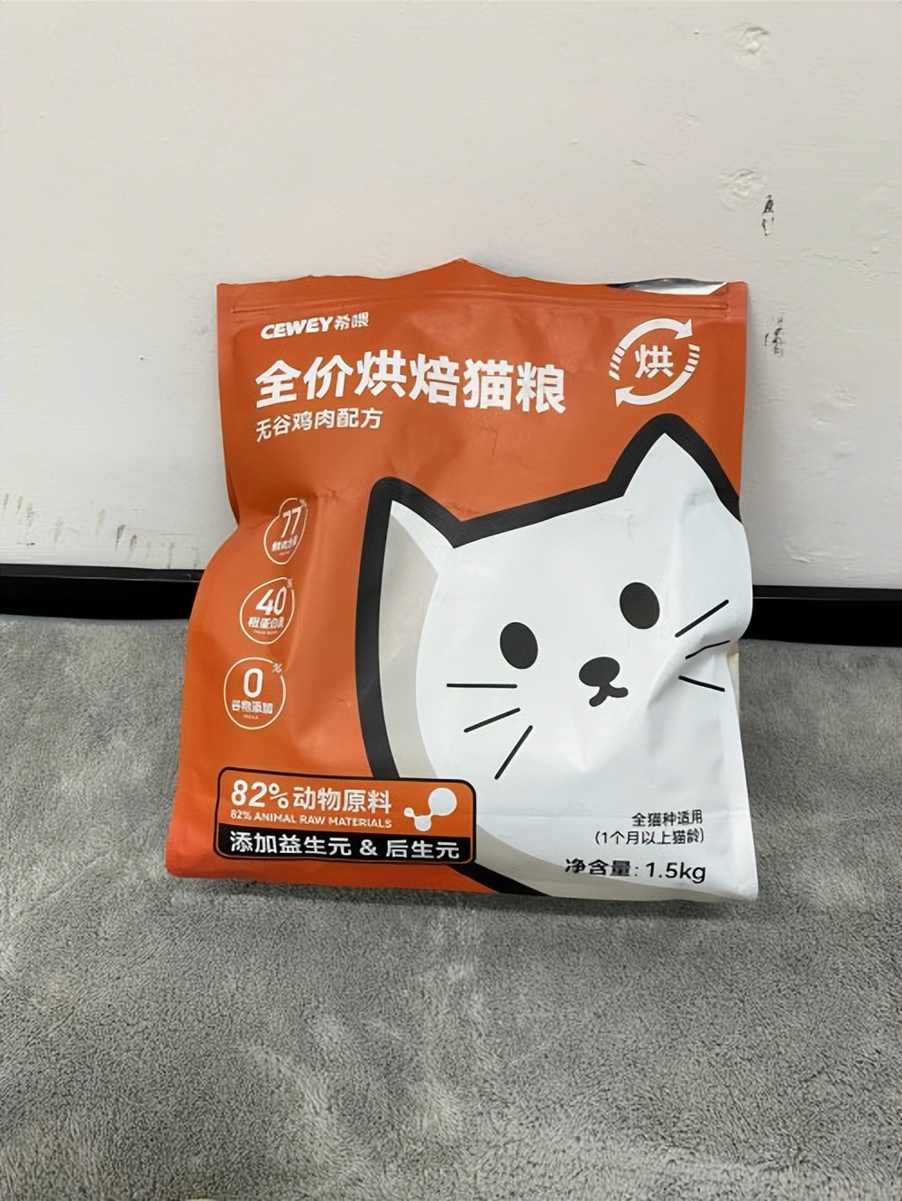 希喂猫粮:平价值得买的猫粮,希喂猫粮的适口性确实出色。它采用24小时内宰杀的鲜鸡肉,通过自研的Bak3烘焙工艺来锁住肉香。打开包装就能闻到很自然的肉味,不含人工诱食剂。官方公布的初食率数据是95.21%,这个数据很合理。毕竟用的是鲜肉、猫咪爱吃的鸡肉,还有专门的锁鲜技术,猫咪不爱吃才怪。