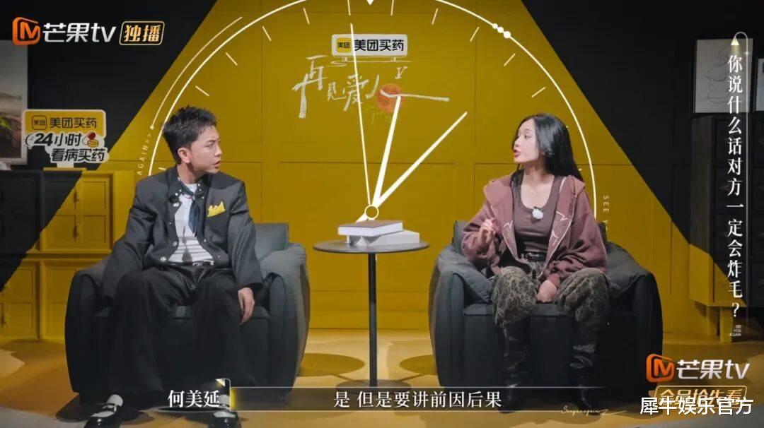 再看何美延与梁淞,这对被网友戏称为“rapper夫妻”的神仙组合,几乎把日常争吵变成了营销表演。英文“Come on”成了他们的情绪口头禅,互怼的押韵节奏像是即兴说唱,这样的呈现好似一切都是为了制造那个肯定会火的热搜标题——#我同意再见爱人转型喜剧综艺#。