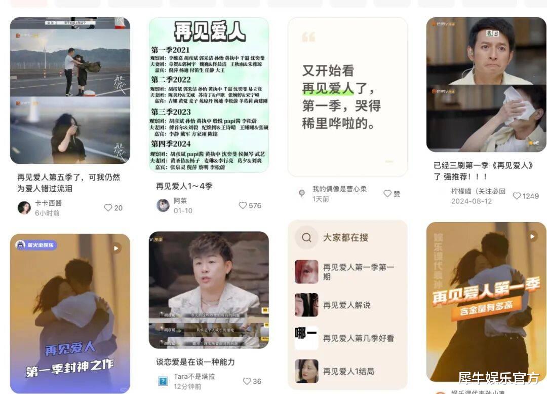 犀牛娱乐原创文|方正 编辑|朴芳《再见爱人5》开播,《再见爱人1》又刷屏了。当下小红书、微博随处可见老粉追忆、安利《再见