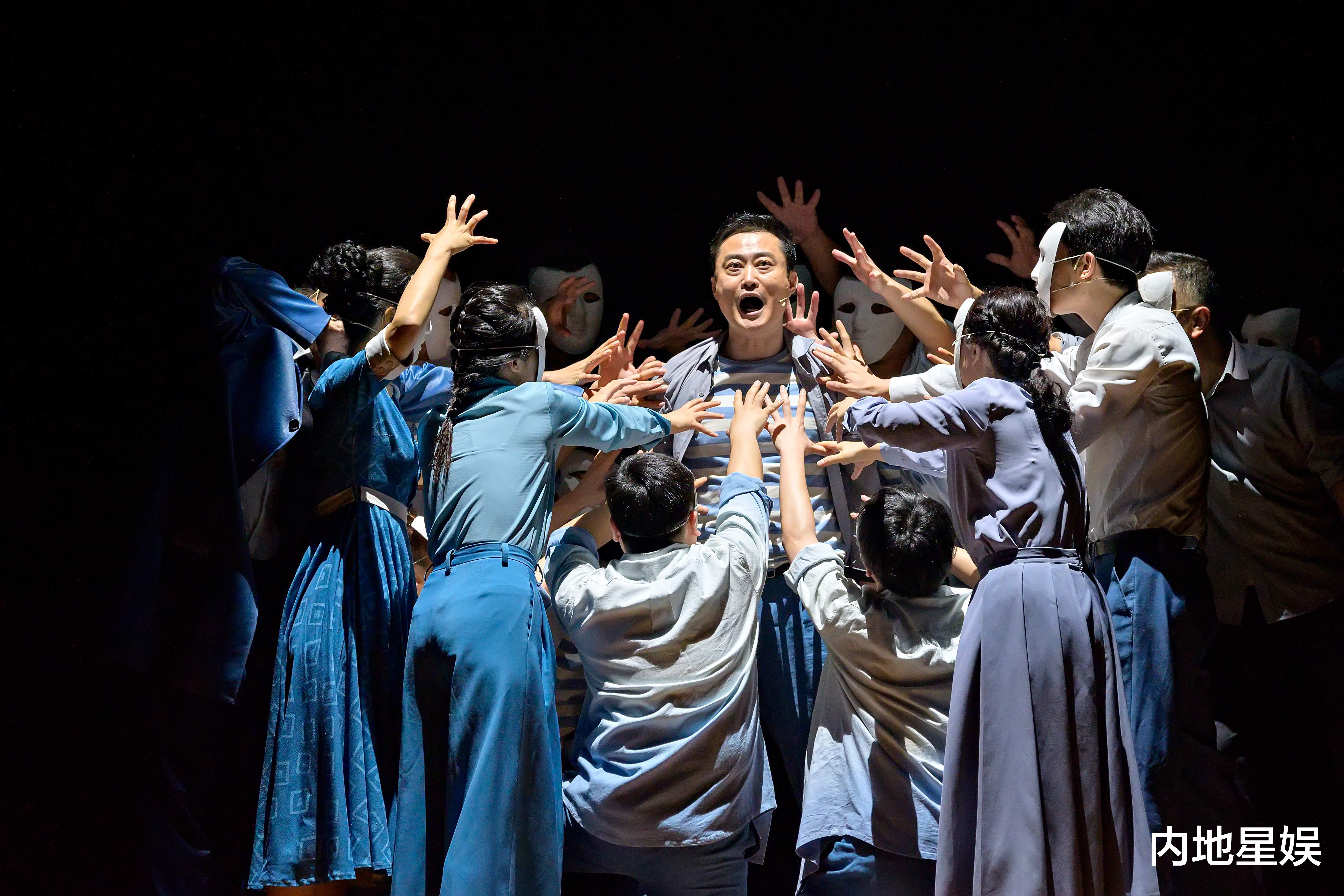 符号意象的运用,更是这部话剧的点睛之笔。群演化身“移动的符号”,时而如古希腊戏剧的歌队,承担转场、布景的功能;时而又成为剧情的“参与者”,让舞台充满隐喻。池大为初入职场时,群演集体手展报纸的定格画面,既是纸媒时代机关场景的缩影,也象征着“装在套子里”的职场人;当剧情触及敏感内容,“叮”的音效响起,群演从报纸后探出头的动作,又瞬间暴露了人性中的八卦与自保。而反复出现的搭灶做饭场景,从筒子楼里“各家老婆准点做饭”的喧嚣热闹,到随着职务变动逐渐冷清,灶台数量减少、人群散去,细微的变化里藏着人物命运的起落,更暗喻着现实对纯粹生活的侵蚀。最震撼的莫过于面具意象:当池大为纠结是否向马厅长通风报信时,戴面具的群演涌上舞台,他们既是池大为心中尚存的正义与原则,也是开始滋生的阴暗面,人物内心的挣扎被彻底外化。