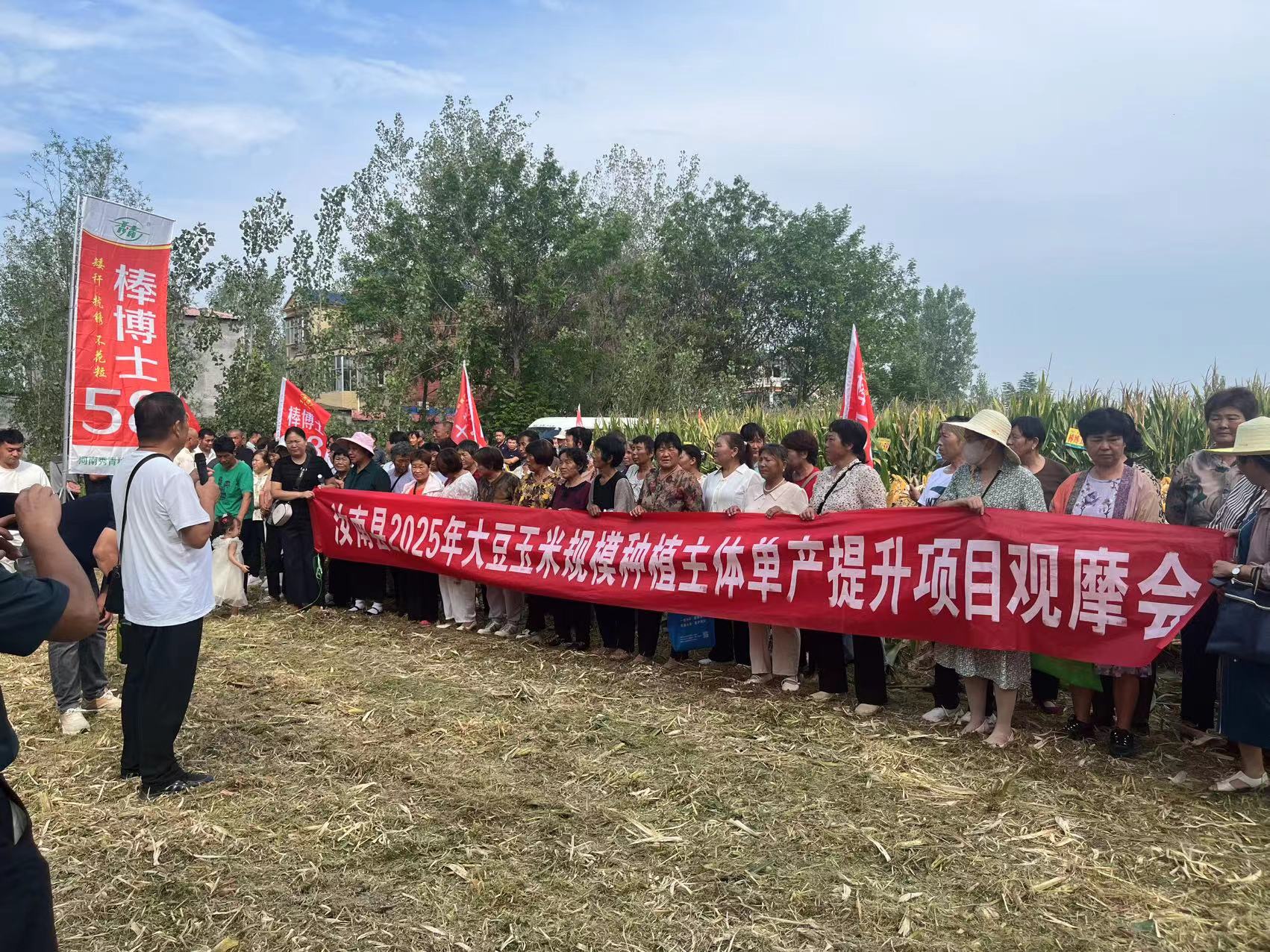 在观摩现场,总农艺师周尚杰首先就此次观摩活动的目的和意义发表了讲话; 农业专家郭宏卫现场讲解了高产栽培要点,让与会人员详细了解了大豆玉米带状复合种植的关键技术;西南区片业务经理姜红星就棒博士58玉米新品种的特点和优势向大家进行了介绍;景福种业公司总经理、棒博士58汝南总代理杨景福就今年“棒博士58”玉米新品种在汝南县的推广种植和目前的长势情况进行了总结讲话;副局长赵静肯定了汝南县近年来在实施大豆玉米规模种植主体单产提升项目过程中所做的大量工作和取得的显著成效。