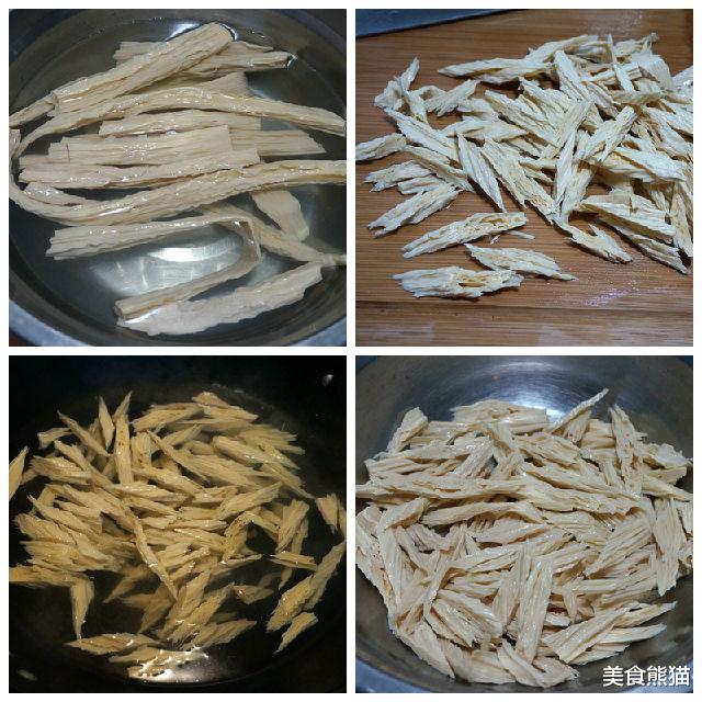 1. 提前凉水泡发腐竹,至少提前2、3个小时,最好能泡半天。