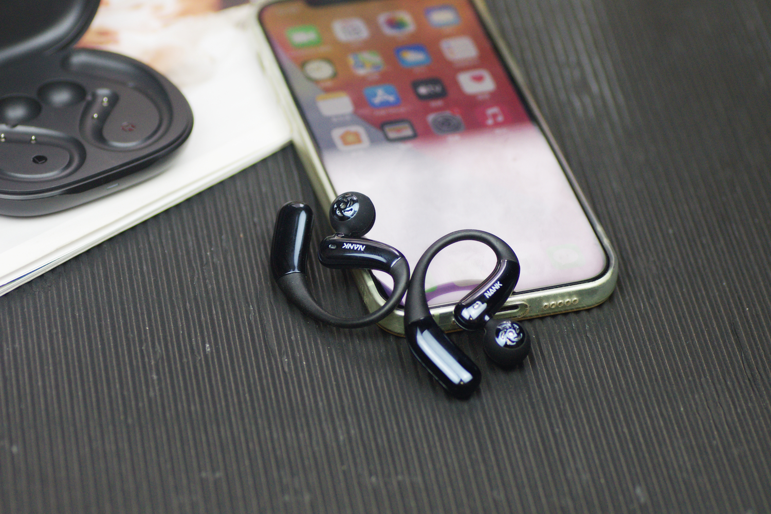 耳机采用人体工学耳挂结构设计,单耳重量仅为5.8g,耳挂部分采用高强度记忆钛合金材质,具备良好的柔韧性和抗弯折能力,长时间佩戴不易变形。耳机表面采用亲肤硅胶涂层,触感温润,有效减少摩擦带来的不适感。