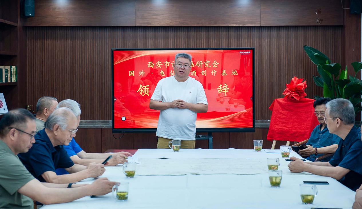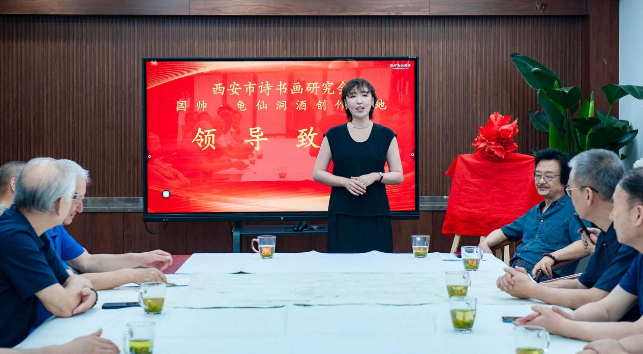 为促进文化艺术与企业发展的深度融合,西安市诗书画研究会与国帅·龟仙洞酒业公司友好协商,决定设立西安市诗书画研究会创作基地。该基地旨在为诗书画创作人员提供专业平台,通过与企业文化的深度互动,推动艺术创作与产业文化的双向赋能,进一步提升企业的文化内涵与社会影响力。