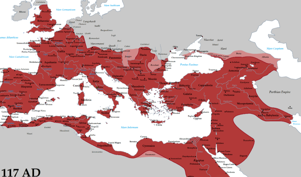 这个帝国最大的疆域,包括今天的意大利、法国、英国、德国南部、西班牙、葡萄牙、以及南欧包括希腊半岛在内,以及今天的土耳其、叙利亚、整个巴勒斯坦地区、北非的埃及、阿尔及利亚、突尼斯、利比亚、摩洛哥、以及整个地中海诸岛屿全部纳入囊中。