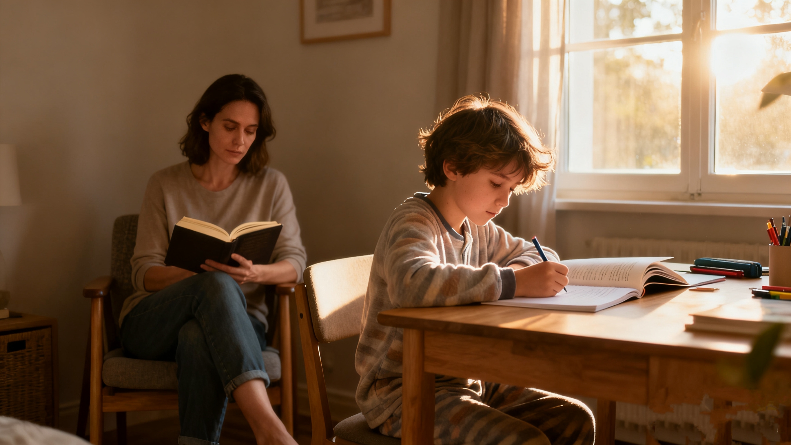 2. 孩子写作业时,您就在旁边看本书。哪怕是装模作样呢!装久了万一成真了呢?
