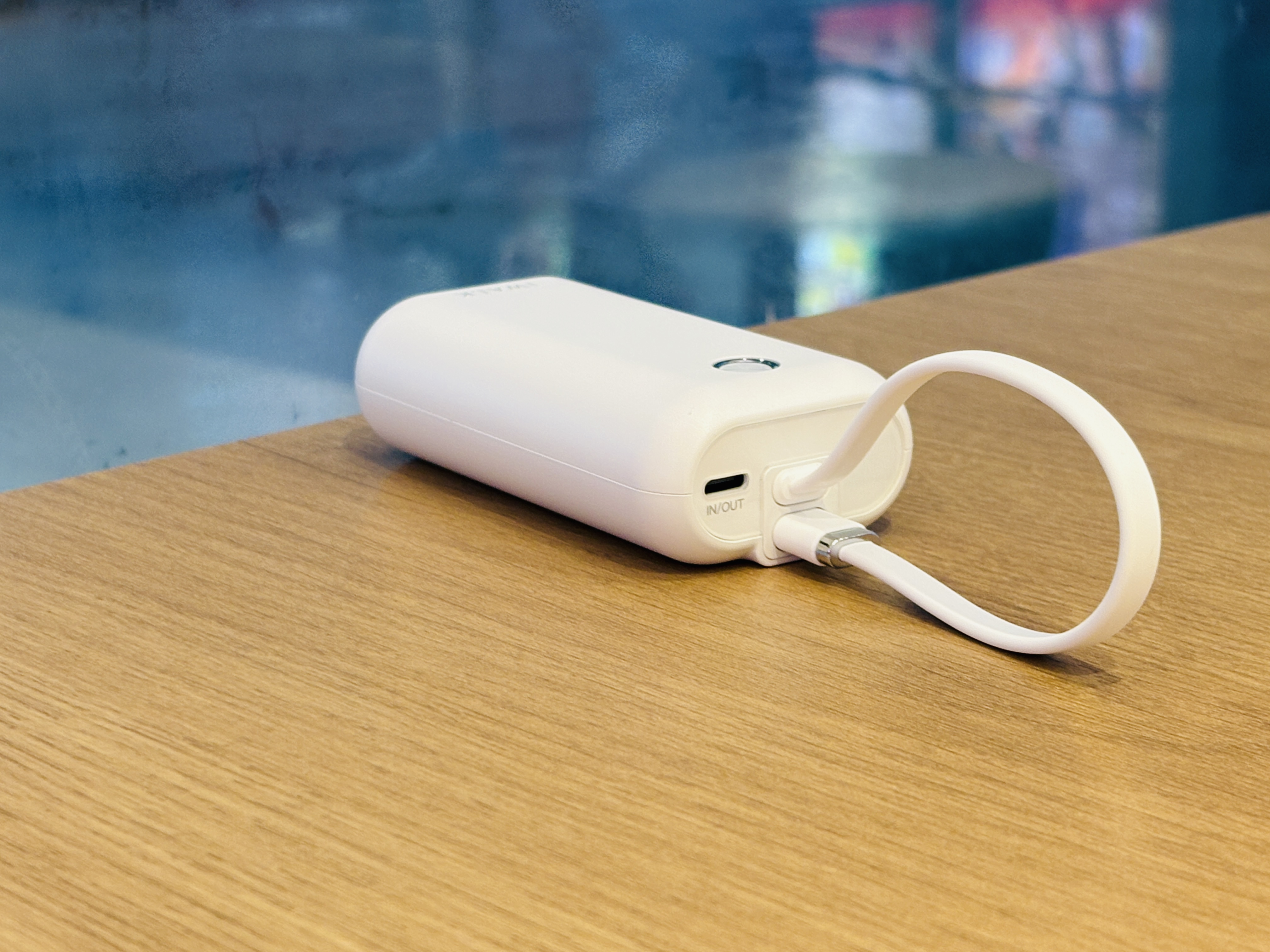 接着说说外观设计,iWALK小冰棍真如小冰棍一般,圆润体型,手感舒服。机身自带充电线,但它既不是拉伸设计,也不是内嵌于机身,而是采用一种类似挂绳的形式出现在充电宝的一端,可以理解能挂书包上便于查找,也可以挂在手上便于拿取,看似是创意满满,实际上如同Siri一般,聊胜于无!我曾经看过一个投票,用户更喜爱拉伸设计的自带充电线,大多数讲自带线在机身外多数是给产品尺寸让路。