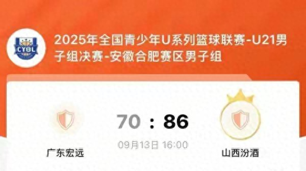这是昨天下午,2025年全国青少年U系列篮球联赛-U21男子组决赛安徽合肥赛区男子组,U21广东男篮与山西汾酒男篮比赛的结果。双方比分定格在广东70比86山西,广东净输了山西16分。谁能想到是这个结果?谁也没想到广东男篮在本届赛事上连负两场?谁能想到山西汾酒男篮豪气冲天连下两城?