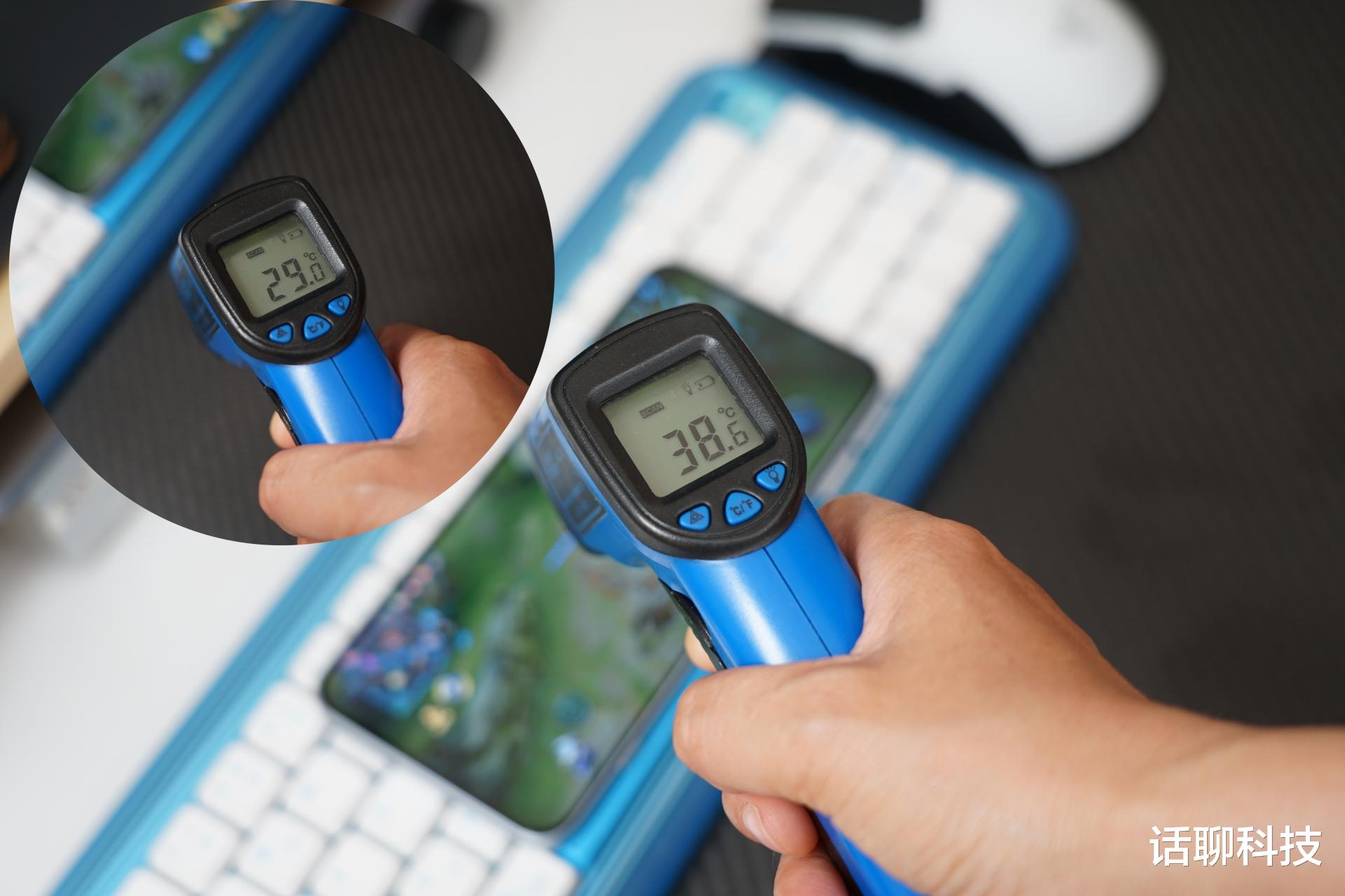 一加Ace 5至尊版搭载的天玑9400+处理器功耗较小,散热做得也更好,采用全新的VC热均板+石墨烯+后盖散热的冰河散热系统设计,哪怕夏天室内高温玩手游,也不用担心手机烫手。关于这点,我也实测验证过。室内温度29℃,持续玩游戏1个小时以上,手机也只是温热,实测屏幕温度在38.6℃左右,仅比环境温度高10℃。