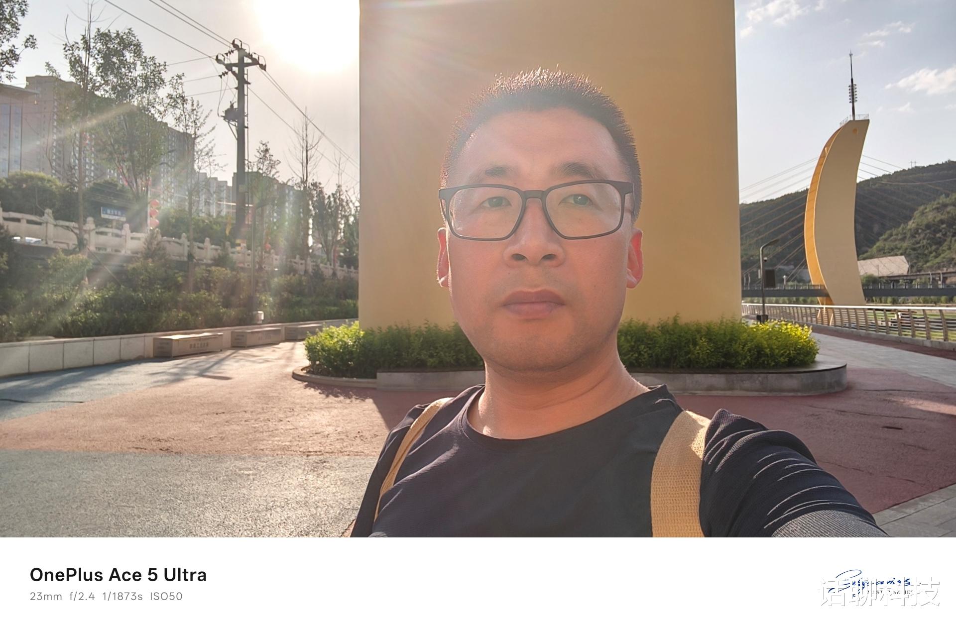 玩手游、刷视频追剧、拍照分享是目前手机最常用的三大功能。尽管从定位来说,一加手机Ace 5至尊版不是主打拍照功能的手机,但就性能来说也很抗打。使用实测,前置1600万像素自拍镜头,略带广角设计、支持美颜功能,抗逆光效果不错。炎炎夏日的太阳下也能保持较高对比度和局部清晰度,不会出现人像拍摄逆光死的情况。