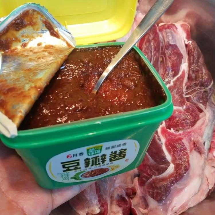 可选用「六月鲜豆瓣酱」(属于黄豆酱范畴)、海天黄豆酱、王致和干黄酱或者东北大酱。若这些都没有,老抽酱油也可,但老抽的香味略显不足。