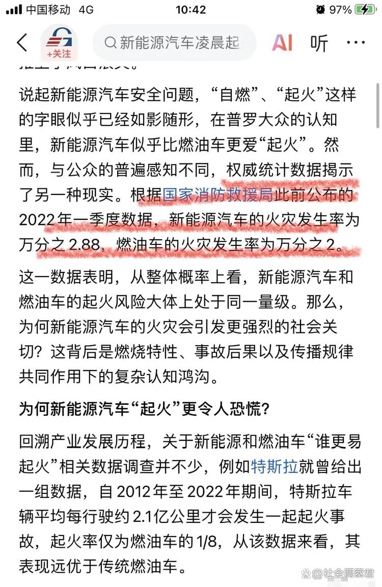 然而,与公众的普遍感知不同,权威统计数据揭示了另一种现实。根据国家消防救援局此前公布的2022年一季度数据,新能源汽车的火灾发生率为万分之2.88,燃油车的火灾发生率为万分之2。