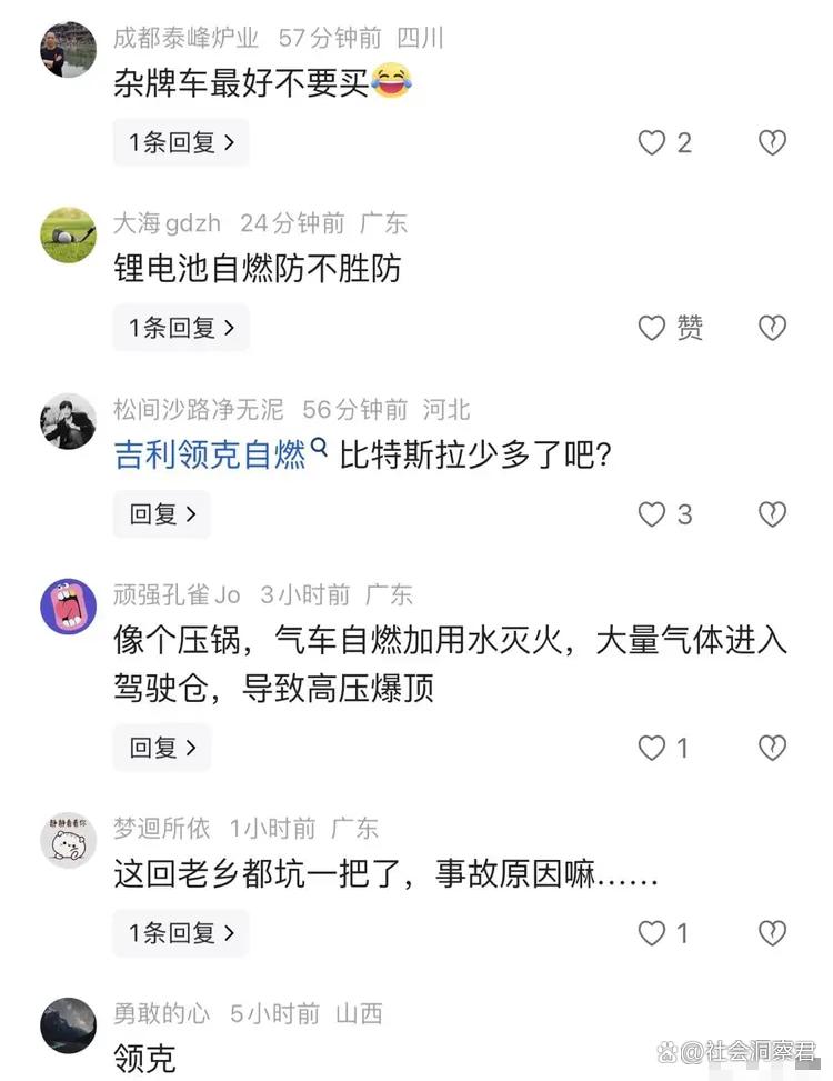 针对此事,有网友分析,像个压锅,气车自燃加用水灭火,大量气体进入驾驶仓,导致高压爆顶。