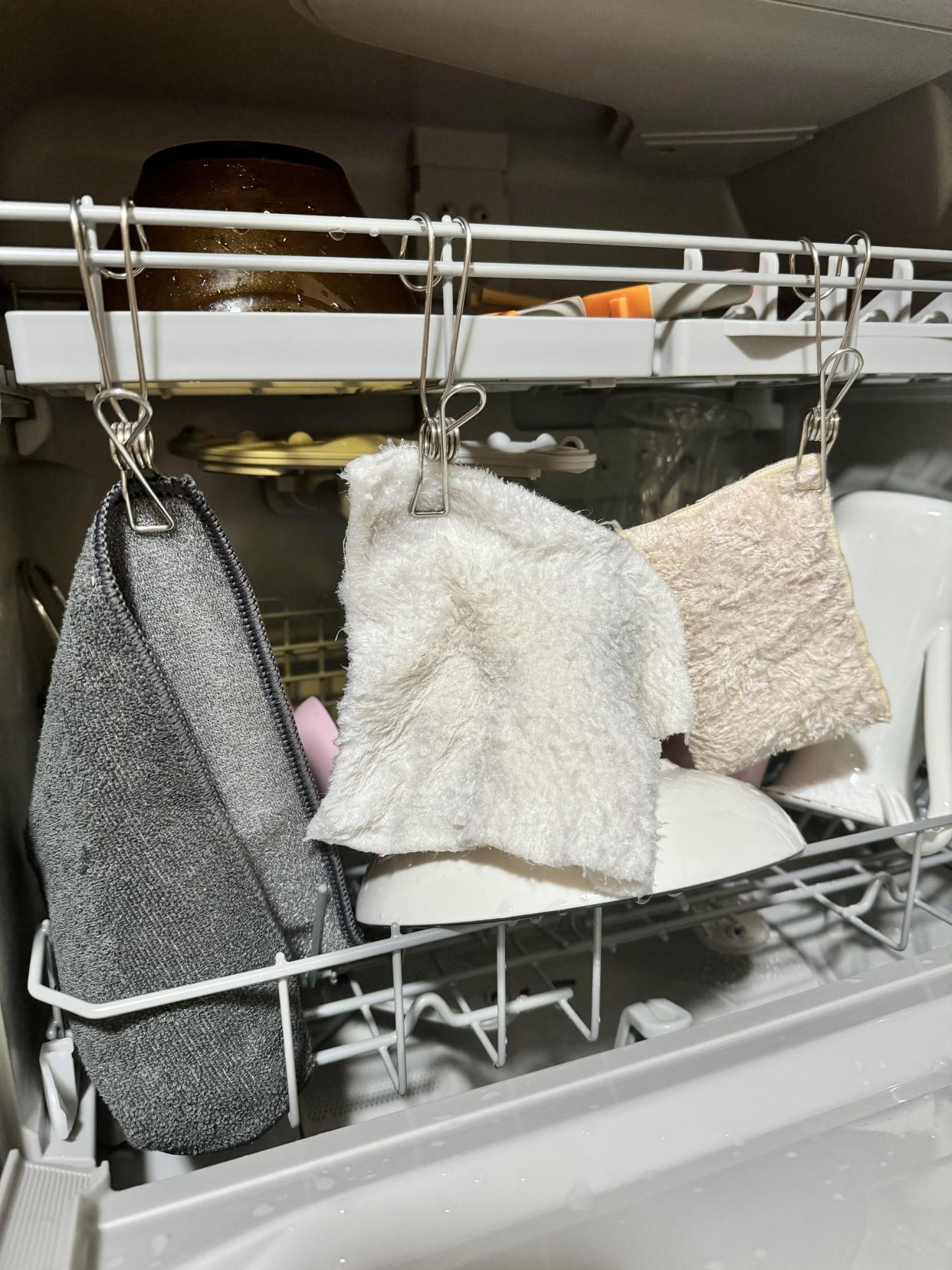 网友@米宅茫家 说,之前网上看到有人用洗碗机洗玩具、果蔬等,感觉打开了新世界。今天尝试用洗碗机洗油腻的抹布、隔热布垫、隔热手套,真是一绝,洗得干干净净,洗完直接拎出来挂着完事。