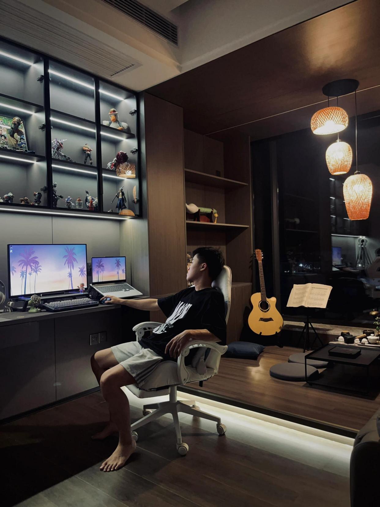 网友@Abio.家,客房客人一年住不到2次,特别浪费,而且客人也不是很喜欢在人家家里过夜,就把15㎡的客房改成了电竞房,彻底把外出党e人逐渐变成了宅家享受生活的半e人。