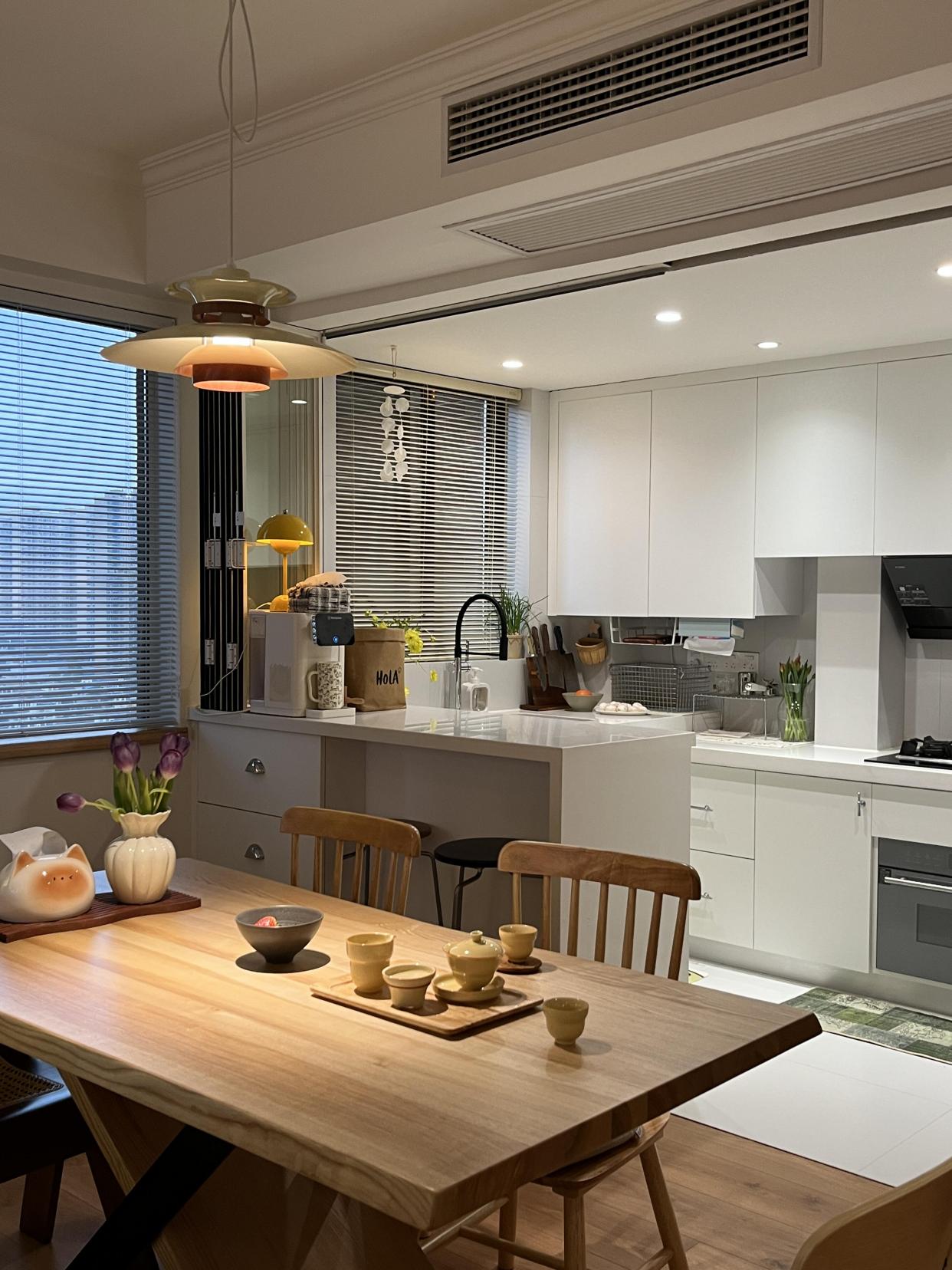 比起正儿八经坐在客厅,反而更爱围坐在餐桌,分享美食,也分享生活点滴,这里不再只是做饭的地方,这个开放式的餐厨区,承载了太多的笑声、饭菜香和温暖的日常。