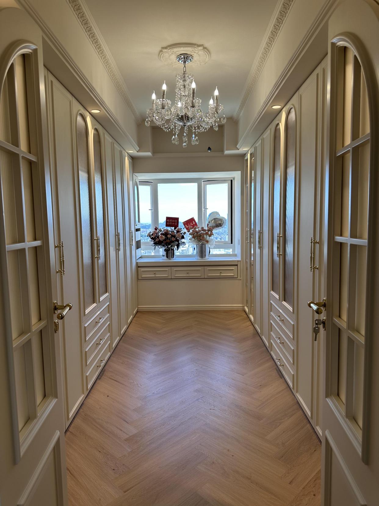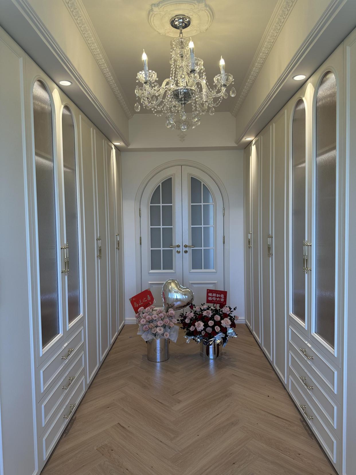 再如网友@奶泡种草机,直接把客房改造成专属独立的衣帽间。打满衣柜,飘窗位置设计成梳妆台,房间还设计成拱形双开门,每次推开门走进衣帽间,都有种公主回家了的仪式感。