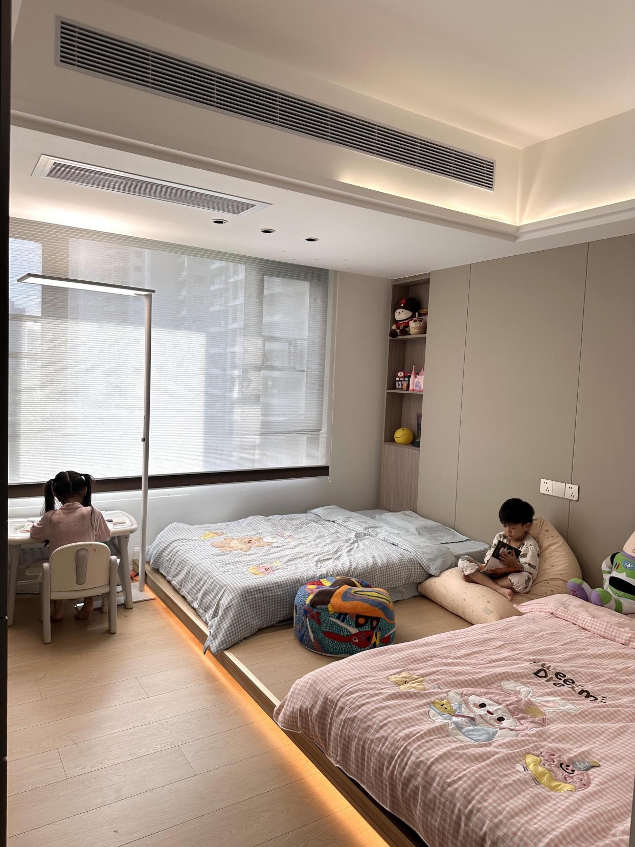 还有网友@曾蓉蓉家的儿童房,也是做的地台,因为她家孩子小时候睡着睡着经常会从床上掉下来 ,所以在设计儿童房的时候就坚决做地台床。