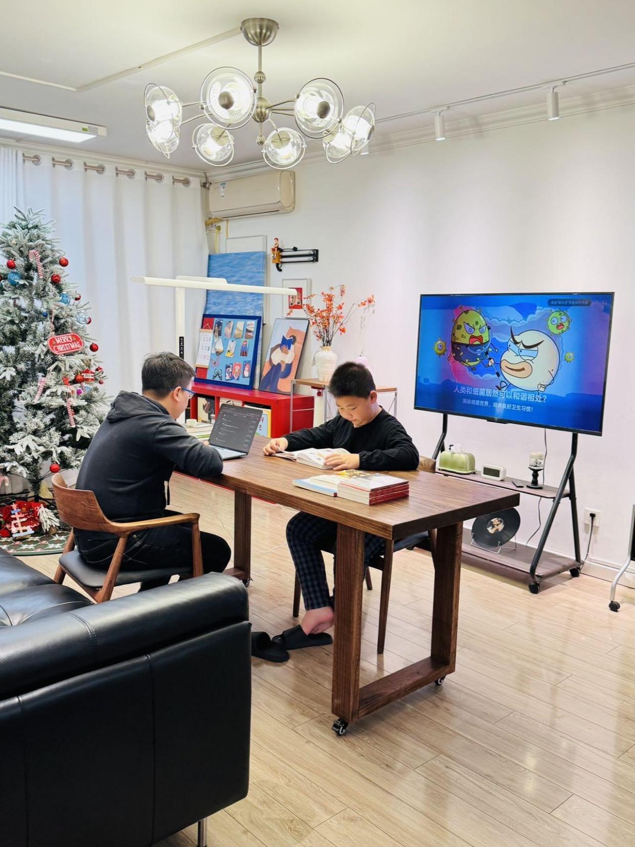 网友@龙胖胖家,大客厅直接放张大餐桌当茶几,孩子的学习效率和全家人的积极性竟悄悄提高了。每天晚饭后,一家三口就围坐在这张餐桌旁,孩子写作业,大人偶尔办公、或看书,满满都是家的温度。