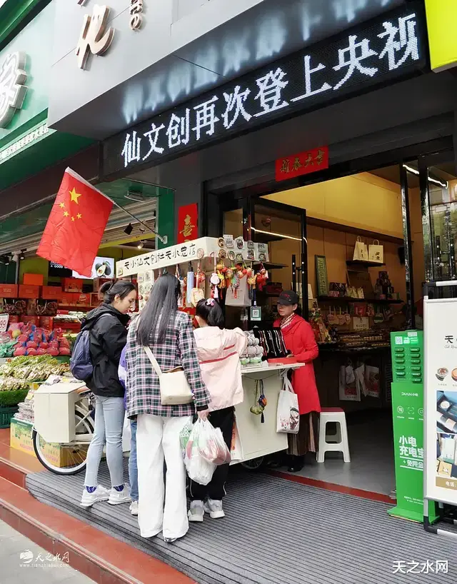 国庆期间,天小仙文创店迎来了大批游客,其中不乏从央视报道、天之水网站、抖音、快手、小红书等网络平台慕名而来的远方客人。