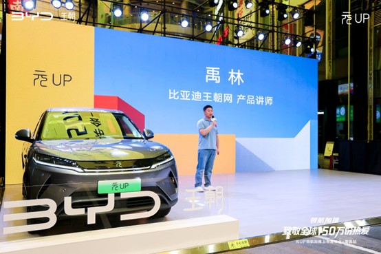 随着舞蹈演员的揭幕表演,元UP 301KM领航型在聚光灯下崭露锋芒正式亮相,比亚迪王朝网 产品讲师 禹林先生现场解读元UP领航版的家族“入门即高配”的产品理念,在7.48万元亲民价格同时,依旧搭载了丰富实用的配置,进一步降低了高品质纯电SUV的购车门槛,为南昌及周边地区消费者带来更具性价比的选择。