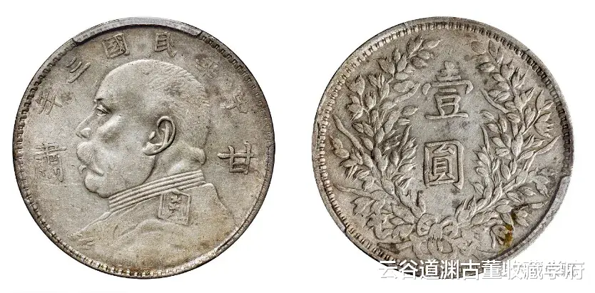 1930至1931年间甘肃造币厂铸造,是唯一加注地名的“袁大头”银币,生产时间短暂,铸额稀少,近年来成为藏家关注的热门品种,坊间各种伪品颇多,真品少见;“甘肃”加字银币因造币机器压力不足,实物大多有浅打现象