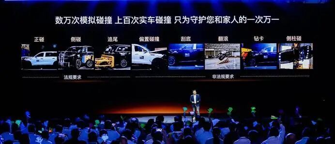 在“顶格对标”的理念牵引下,风云T11将安全视为对家庭用户最郑重的承诺。发布会现场,一场极具冲击力的实车碰撞测试,生动诠释了何谓“移动安全堡垒”。在高速碰撞中,乘员舱结构完整,A柱、B柱未发生结构性失效,11安全气囊系统精准展开,覆盖从主副驾到第三排的每一个座位。这套系统不仅包括双腔远端气囊、跃屏式气囊、主驾膝部气囊和2200mm超长侧气帘,更创新搭载了中国SUV品类首款量产的后风窗安全气囊,填补了三排安全保护的盲区。