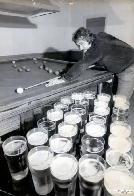 比尔比体量更巨大的是酒量。每次比赛之前至少喝6品脱的啤酒。英制一品脱合568毫升,差不多整整一大杯啤酒或一瓶啤酒。比赛中每局至少喝一大杯,然后跟朋友喝、回家喝,每天能喝掉四五十杯。比尔巨饮可是有正当理由的,因为有遗传的神经性疾病,手会发抖,医生开证明说喝酒能起到安定作用。有一次,比尔和斯宾塞在澳大利亚一球房下注打球,从中午打到晚上7点,比尔竟然喝掉了76罐啤酒,国外的一罐啤酒差不多有500毫升。实在太夸张了。