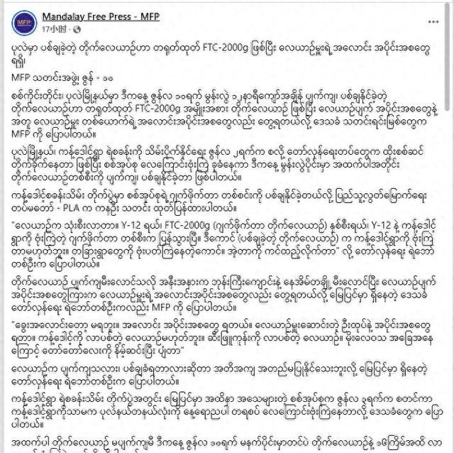 就像缅甸明知低空战术危险,还是得接着用因为他们没别的选择。北部山区地形复杂,无人机续航和载弹量有限直升机又容易被打,FTC-2000G 成了性价比最高的折中方案。